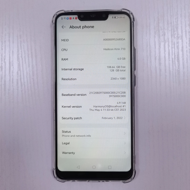 HiSilicon Kirin 710 eight core processor, with a frequency of 2.2 GHz (large quad core)+1.7 GHz (small quad core)